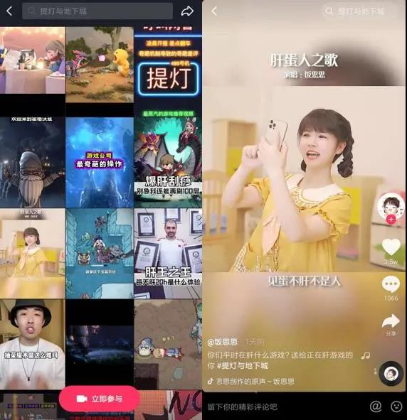 好在《提灯与地下城》同样意识到了这点,成为继《最强蜗牛》、《一念逍遥》后近年来的第三款买量大宣发独游产品。可以发现,游戏不仅与“呼叫网管”等抖音头部KOL合作,还和“饭思思”合作推出了主题曲《肝蛋人之歌》。如今,光是在抖音“提灯与地下城”的话题已有4300多万播放。尽管由此也吸引了不少玩家,但“刷抖音10分钟能碰到八次游戏的广告”的高频投放也引起了不小的争议。
