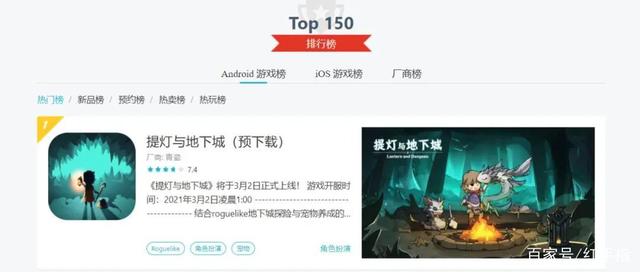 3月2日,吉屋游戏工作室研发的手游《提灯与地下城》上线。正式上线后,这款游戏登顶iOS免费榜,拿下畅销榜Top6的好成绩,甚至在TAPTAP霸占了双榜单第一。